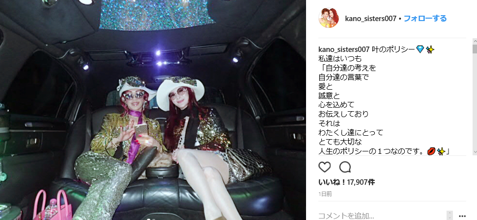 2017年11月1日、インスタグラムを更新した叶姉妹は、ファンに向けて人生のポリシーを紹介しました。