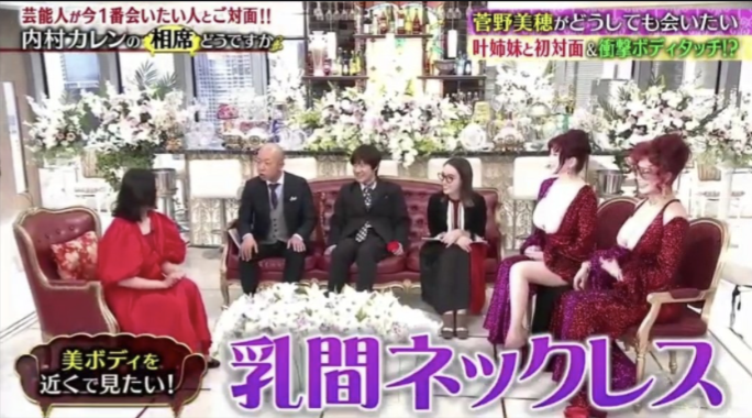 また、叶姉妹のファンだという女優・菅野美穂さんは、「デコルテから目が離せない」と露出度の高いドレスを見にまとう2人を絶賛。これを受けて、叶姉妹は「私たちは全身がお顔ですから、胸を見られて恥ずかしいという気持ちであれば、簡単にこのようなドレスは着ません」と答えていました。