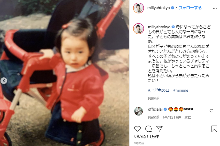 今回加藤さんが自身のInstagramで公開した幼少期の写真について、ファンやフォロワーからは、「激レアこども写真可愛い」「ミニミリヤ可愛すぎる」「あああめちゃくちゃ可愛い」など、反響の声がたくさん寄せられました。