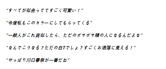 川口さんのお洒落なヘアスタイルやファッションは、真似てみたいファンが多いようです。