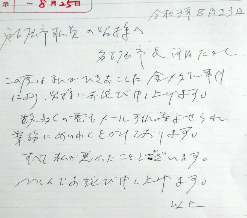 直筆謝罪文はこちら