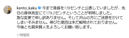 これまで178cmと公表してきた身長に訂正を入れたというのです!