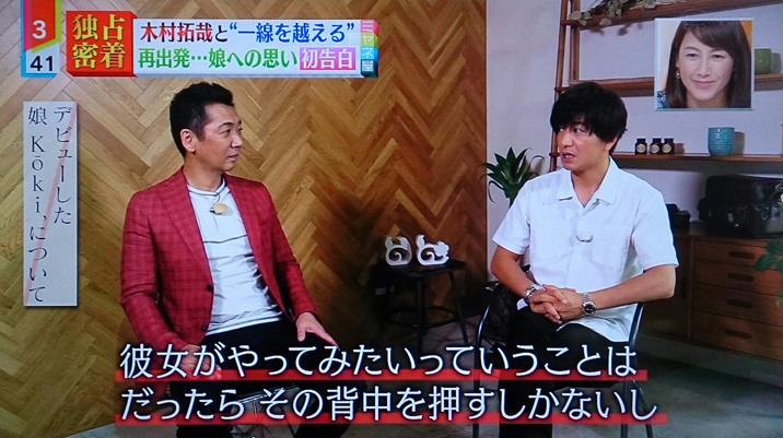 司会の宮根誠司さんとロケで対談。Koki,がデビューした日に宮根さんに「おやじとお母さんの背中を見せているだけ」とメールしたという木村さんは真意について「自分ができるのはそれしかない」と説明しました。「彼女がやってみたいんだったら、その背中を押すしかない。『こうしろああしろ』は絶対できないので。自分がこういうことを続けられる限り、見せるしかない」と同じ芸能界に進んだ娘の決断を尊重しました。