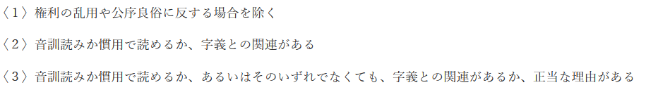 しかし、本来の漢字の読みとは異なる読み方をどこまで認めるかが争点となっています。