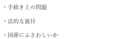 国葬をめぐっては各自の考えで出席、欠席と意見が分かれています。
