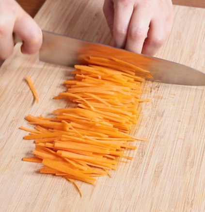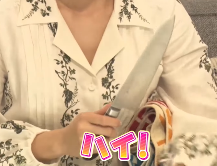 そして、番組ではストレス解消法だという”野菜の千切り”を披露した剛力さん。マイ包丁を取り出し、キッチンにあったニンジンを洗い、包丁を手に。素早く包丁を引きながらニンジンを切り始めました。
