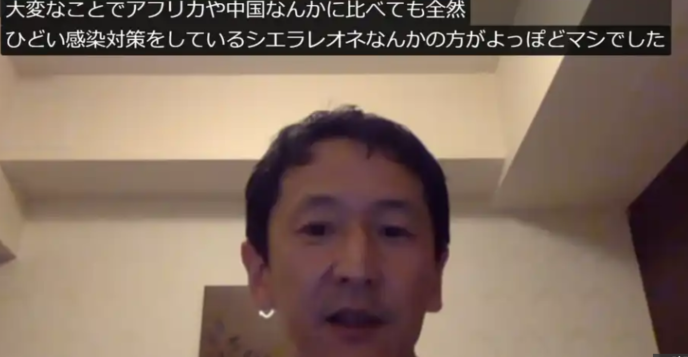 「アフリカも中国も怖くなかったが、ダイヤモンド・プリンセス号船内は非常に悲惨な状態に心の中で怖いと思った」と動画内でも話していました。