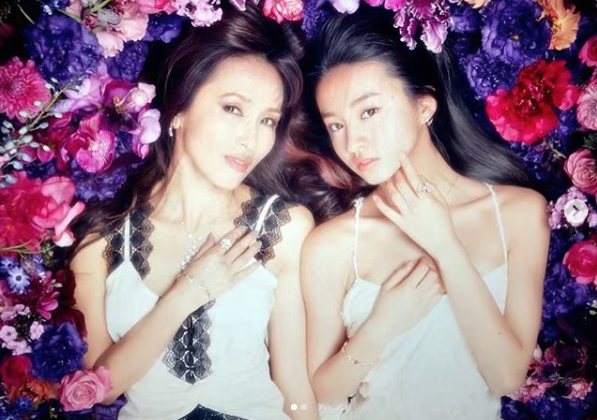 公開された写真では、お揃いのような白いキャミソール姿の工藤静香とKoki,が色とりどりの花に埋もれるように寝転んでいました。