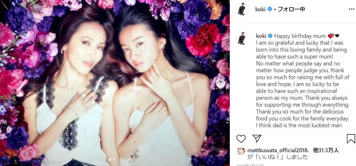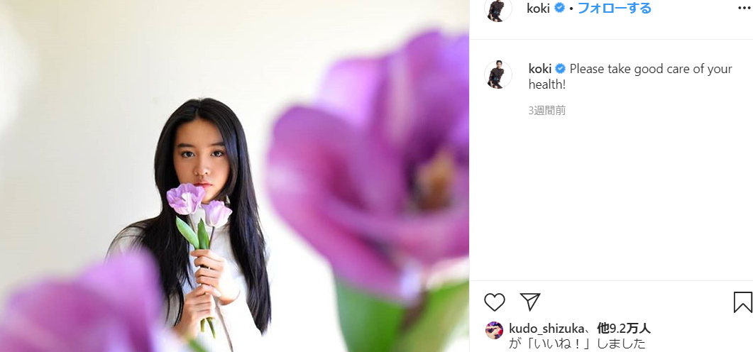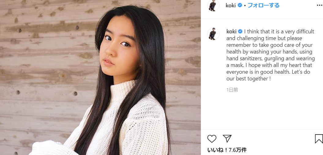 新型コロナウイルスの感染拡大を受け、Kōki, さんは1月31日のインスタでも「健康には十分気をつけてください」とメッセージを送っていました。