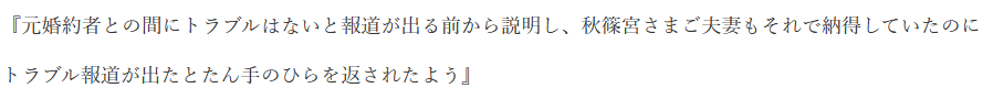 秋篠宮さまは著書で金銭トラブルに触れる一方、佳代さんの気持ちはトラブルの認識は無い様子で