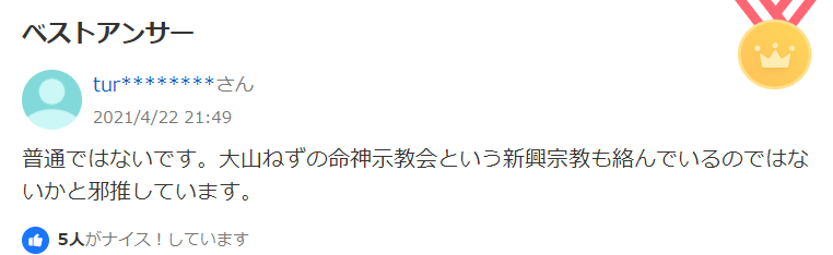 読み方は「おおやまねずのみことしんじ教会」です。咽頭がんに苦しむ男性のもとに「おおやまねずのみこと」という神が現れ、命が救われました。その後その男性は神の使者として「供丸斎(ともまるさい)」を名乗り、「大山ねずの命神示教会」を創設しました。