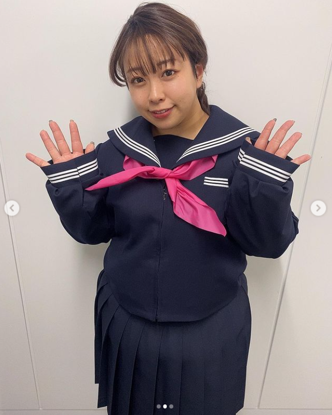 お笑い芸人の餅田コシヒカリさんがインスタグラムを更新し、セーラー服姿を披露すると、ファンから反響を呼んでいるようです。