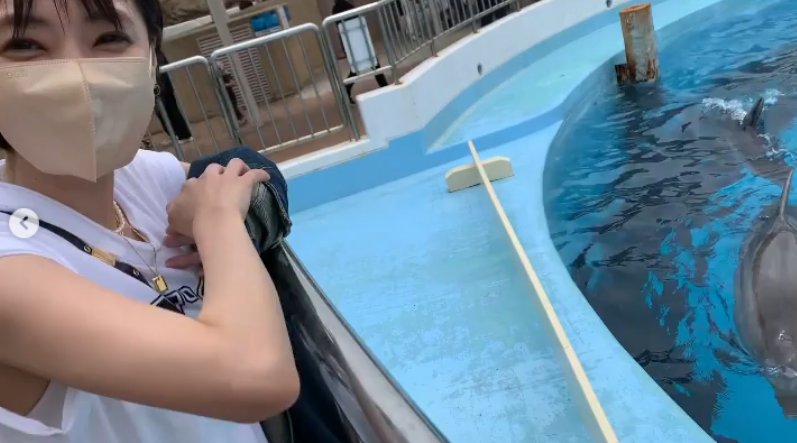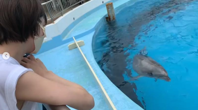 福岡県にあるマリンワールド海の中道を訪れた倉科さん。海の動物たちに囲まれ楽しむ様子を投稿しました。