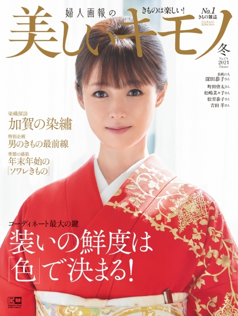 女優・深田恭子さんが、20日発売の『美しいキモノ』2021年冬号(ハースト婦人画報社)の表紙を飾っています。