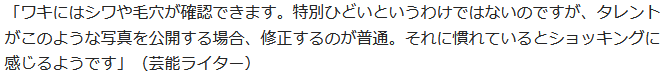 “脇キレイ”と絶賛するコメントもあれば、