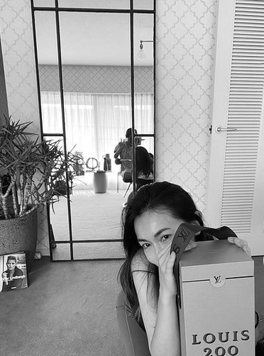 ルイヴィトンから贈られたであろうシャンパンを抱える写真を投稿しました。