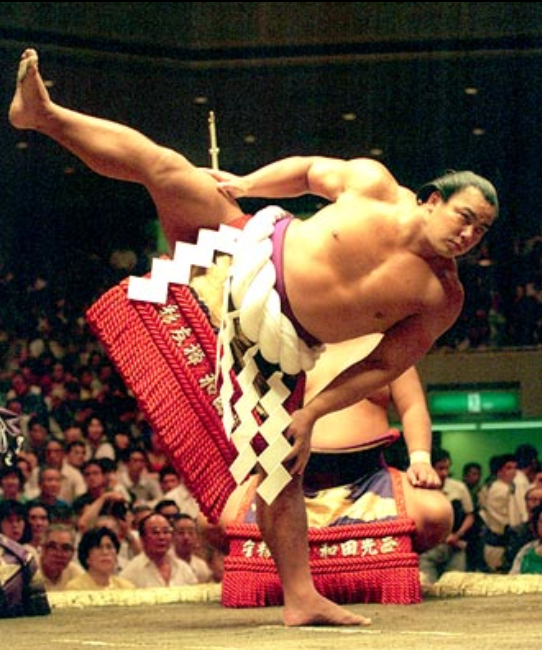 千代の富士の筋肉は上半身だけでは留まりません。下半身のトレーニングもかなり重視されていたようで、土俵でふむ四股をみれば、一目瞭然です。一見簡単そうに見える四股ですが、そうとうな柔らかい下半身がないと、四股は踏むことができません。四股をふむトレーニングは、特に粘りの強い筋肉を作ります。相撲では瞬発力よりも、持久力のある筋肉が求められます。四股を踏む稽古はこの粘りを作るトレーニングなのです。千代の富士の下半身が強い証拠に、当時の力士の中で、千代の富士ほど高さのある四股を踏んだ人は、誰もいませんでした。