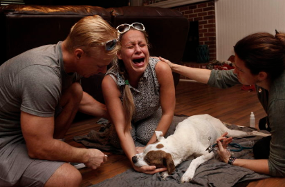 別れ惜しんでいる人もいたが、ロスは写真作家としてこの光景を写真に収め続けた。もちろん、ロスも人間だ。家族と一緒に横で見守っているが、心の中は愛犬を見ているだけで胸が苦しくなったが、家族同様に涙をこらえながらシャッターをとめることはなかった。