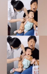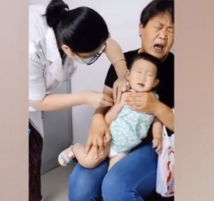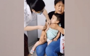 この映像は中国のある小児科で撮影されました。映像の中のおばあさんは孫の保養接種のためこの病院に訪れました。