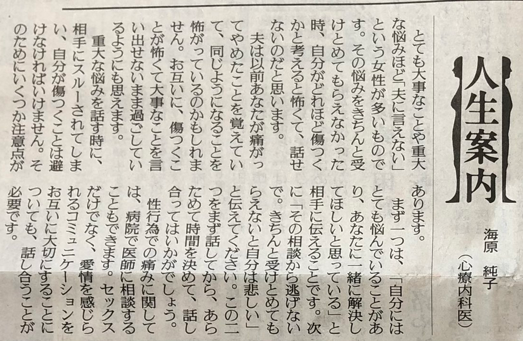 心療内科医の海原先生です。どんな回答が送られたのでしょうか。