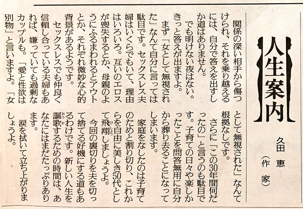 久田先生の回答を読んで少しでも気持ちが楽になっているとよいのですが…。