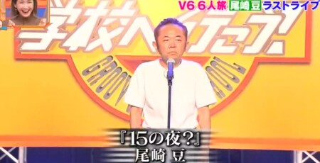 特設ステージに案内された「V6」は、『15の夜』がかかると「来たー!」「この曲は!」と察して盛り上がり始め、舞台袖からは当時の衣装の豆さんが登場したのでした。