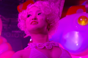 マリリン・モンローの妖艶(ようえん)な曲が響き渡る中、セクシーなドレスを身にまとった、ちびもえこさんが登場すると、会場がわきました。東京都渋谷区の「KAWAII MONSNTER CAFE」。大きなケーキ形のピンク色の舞台の上で、ちびもえこさんは踊りながら腰をくねらせ、ドレスを大胆に脱いでいきました。ちびもえこさんは、ここで月に1度「小人バーレスクダンサー」として活躍しています。「背が低いことは私にとって、ダンサーとしての強みになっています。登場するだけで、会場がわっとなってくれるので」と言います。