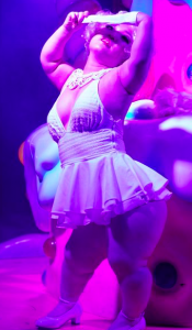 数カ月間、ポールダンサーのもとでダンスを特訓。2018年1月に「KAWAII MONSTER CAFE」での初舞台に立ちました。「私はコンプレックスの塊のような人間で、人前に出るような人間ではないと思っていました。だから体のラインや短くて太い足も、服装で隠してきました。そんな私の踊りを見て、みんな笑顔になってくれました。ダンスをしている瞬間は、『この身体でもいいんだ』と自分を肯定できました。ダンスのおかげで、コンプレックスだった身体を生かす方法があるんだと気づきました」とダンスをする喜びを語りました。