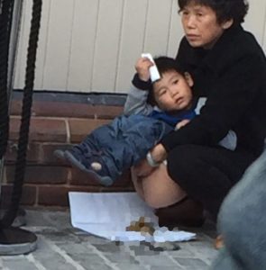 中国では、都市部で働く若夫婦に代わり、祖父母が孫を預かって農村部で育てるというケースが大変多い様です。のどかな田園地帯で、おおらかな祖父母の元で育つことには大きなメリットと意義があります。ただ、唯一の問題は、しつけ全般においてひと時代、ふた時代前の中国人のやり方が継承されてしまうということです。祖父母は「いつでもどこでも排泄してよい」と言われて育った世代なのです。可愛い孫の将来を考えたら、この誤った甘やかしだけは今すぐにでも断ち切る必要があります。都会に出た子供たちは、ぜひともトイレの正しい使い方やマナーを親に教えてあげてほしいです。