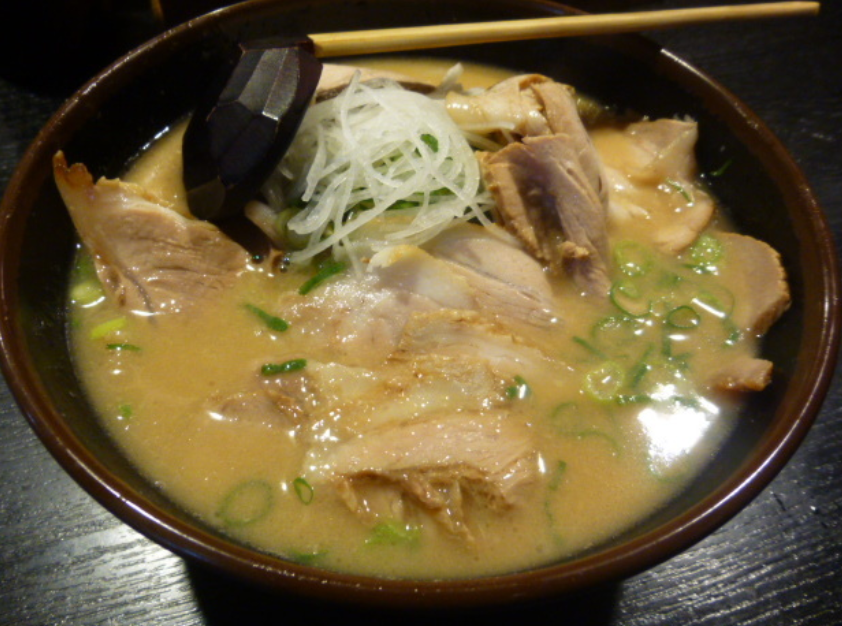 そして堂々の1位に輝いたのは、知る人ぞ知る「酒かすラーメン」です!銘酒の町・京都伏見の酒かすを使った独特の風味のラーメン。酒かす好きにはたまらないですね。具材は、刺身のつまを思わせる大根の千切りや油揚げ、青葱などの和風な具で、京都らしい感じがご当地感あって良いですね。鶏ガラと豚骨をベースにしたコクのあるスープは、酒粕と醤油で味付けした奥深い甘味があり、チャーシューとの相性も抜群でしょう。その昔、酒かすは貴重な食材で大切な栄養源であったとされており、最近になってガン抑制・生活習慣病の改善・アレルギーの改善・美肌効果など様々な健康効果が知られてきていますので女性にもオススメですね!また、アルコール分は飛ばしてあるそうなので、子供も一緒に食べられて、飲酒運転も心配ないようです。