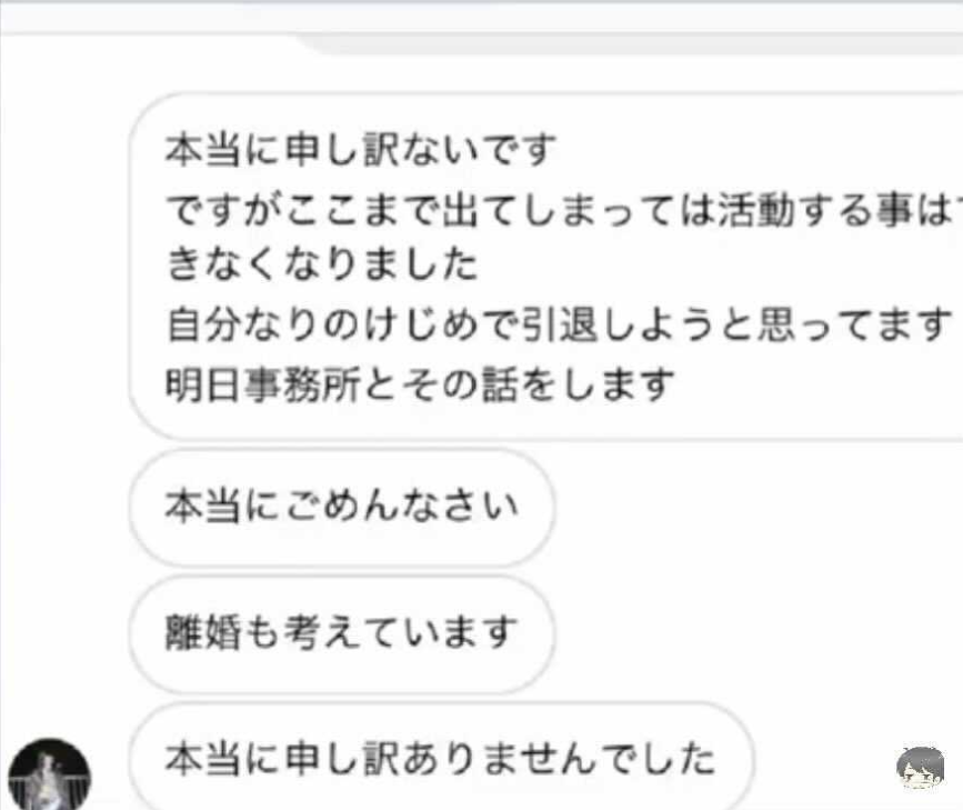 また、今回の騒動をうけワタナベさんは既に今泉さんとの「離婚を考えている」と発言しているようです。メッセージのスクリーンショット画像も出回っており、その内容がこちら…