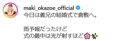 3月25日に義理兄の結婚式に出席したことをインスタグラムで報告しました。