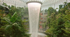 空港内にはこのような屋内庭園があり、高さ40メートルの滝などもあります。