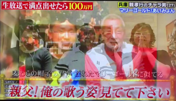 この姿にスタジオは騒然となり、歌の途中に彼の幼少期の映像とともに父親へのメッセージが流れる場面には出演者のギャル曽根も涙していました。