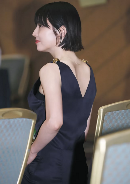 この日はV字デザインのブラックドレスに身を包み、透き通るような白肌を見せていました。
