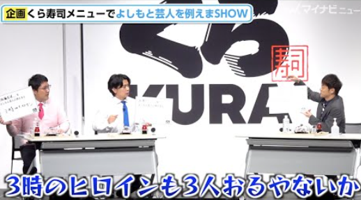 この日は新メニューの試食会も実施され、イベントに参加した芸人3人の答えが揃うと最新メニューが試食できる企画『くら寿司メニューでよしもと芸人を例えまSHOW!!』も展開。