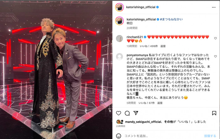 そこに中居さんの呼び込みで香取さんが登場し、3人がスタジオにそろうと、松本さんは「(中居と香取の共演が)ありえるんだね…」と感慨深げに一言。