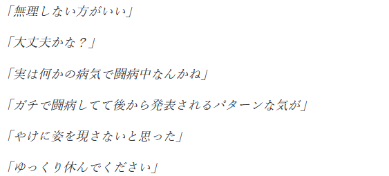 コロナ感染やガンといった重い病を患わっているのではないかという心配の声も上がっています。