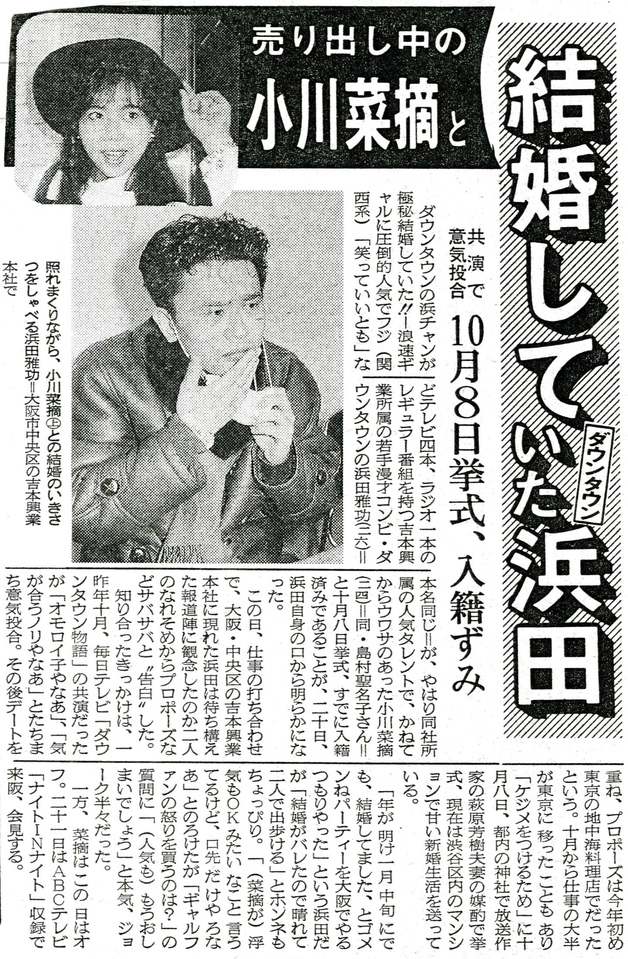 2人の出会いは、1987年から1988年にかけて放送されていたドラマ「ダウンタウン物語」に、小川さんが途中からレギュラー出演したことがきっかけだそうです。最終回の撮影日に浜田さんが「仕事で東京に行くことがあるから電話番号教えて」と小川さんに声をかけたと言います。
