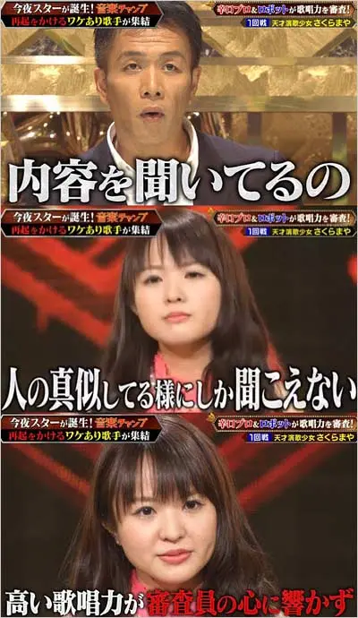 しかし、さくらの歌手生活を左右する騒動が起きました。さくらは『今夜、誕生!音楽チャンプ』に出演し、中島美嘉の「GLAMOROUS SKY」を披露して、ロボット採点99.078点の高得点を叩き出したが、審査員4人からは70点と低い点数を言い渡されていました。