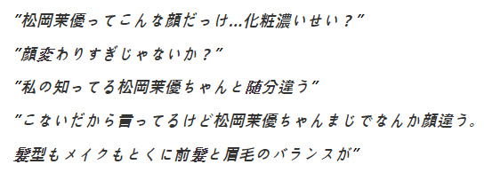 いつも雰囲気の違う松岡さんの容姿に視聴者たちはネットでざわざわとつぶやいています。