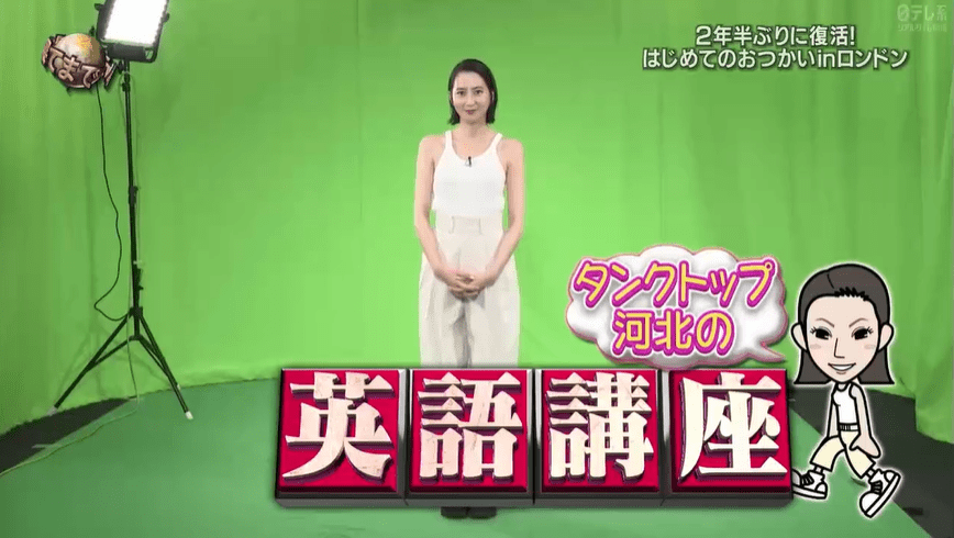 するとそこへ、河北による正しい英語を紹介するコーナーが挿入されるのですが、白いタンクトップ姿の河北が映し出され、二の腕や鎖骨を晒しながら「Slide」と滑り台の英語を紹介していました。