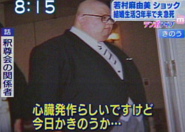 2人は2003年9月に極秘入籍し、それが一部週刊誌でスクープされ、その5カ月遅れでの結婚報告会見が行われました。岡山県に本部を置く釈尊会は、信者の数は約1万人で、バツ2という小野氏はスキンヘッドに体重150キロといわれる巨漢でした。