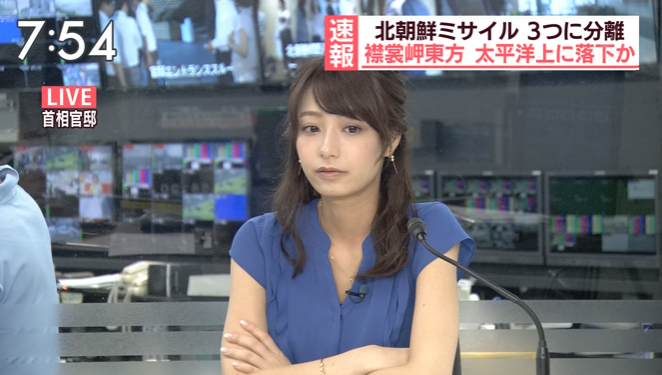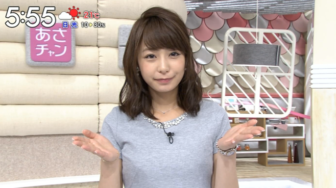 宇垣アナは同志社大学時代にはミスキャンパスに輝き、その抜群のスタイルとキュートな童顔フェイスで同局では人気No.1アナの呼び声も高い方です。
