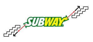 サブウェイのロゴの最初の文字と最後の文字にある矢印は、地下鉄の入り口と出口を表しています。 「このような方式で会社は地下鉄で食べられる手軽な食べ物だということを見せようとしたんですが。」 グリーンは会社が健康的な食べ物を擁護し、良い品質の製品のみを供給するという事実を象徴し、黄色は喜び、楽しさを意味するといいます。