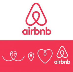 サイトのユーザーを象徴する人の頭、家やマンションがある場所の地図上の位置表示、愛を意味するハート、そしてこの3つが組み合わさってAirbnbの文字Aを象徴しています。