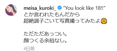 インスタグラムを更新すると18歳に見られたことを嬉しそうに綴り、