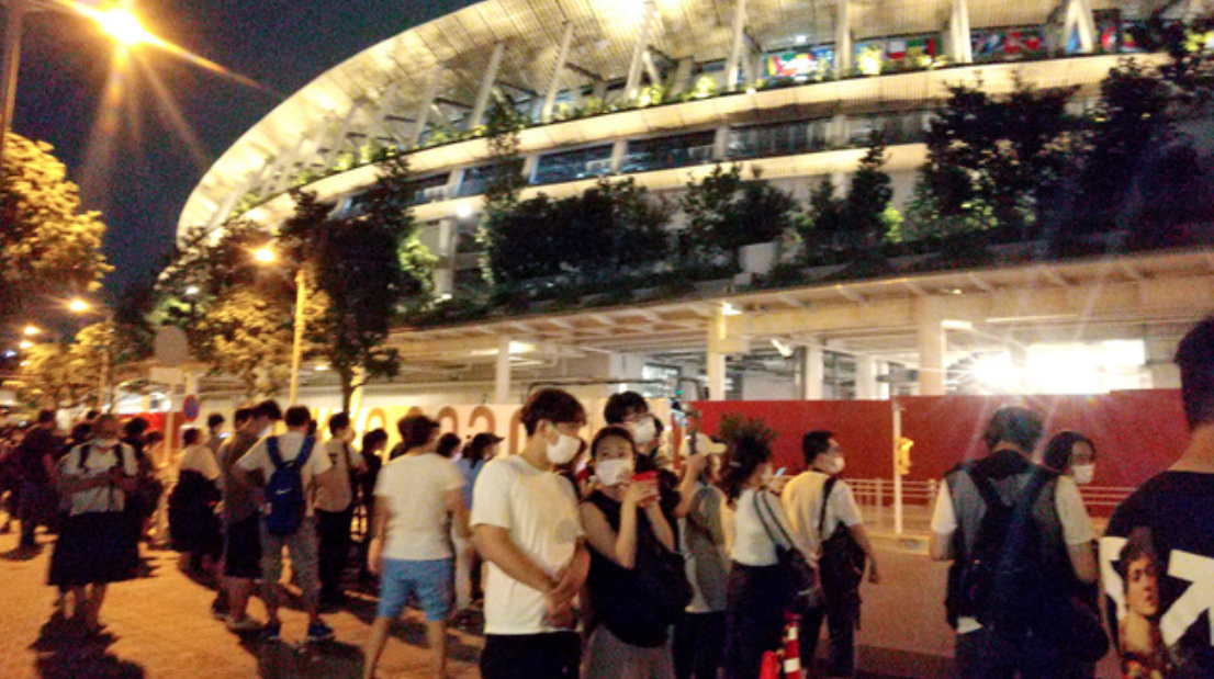 東京オリンピック開会式当日国立競技場周辺には23日、深夜にも関わらず多くの人が集まっていました。