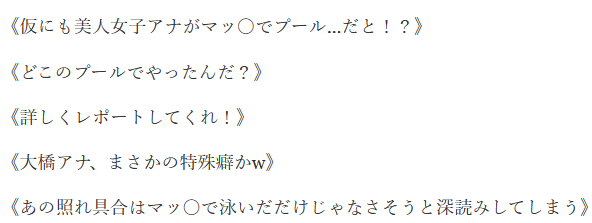 すると大橋アナはマッ〇でプール体験を明かし、視聴者をザワつかせたのです。