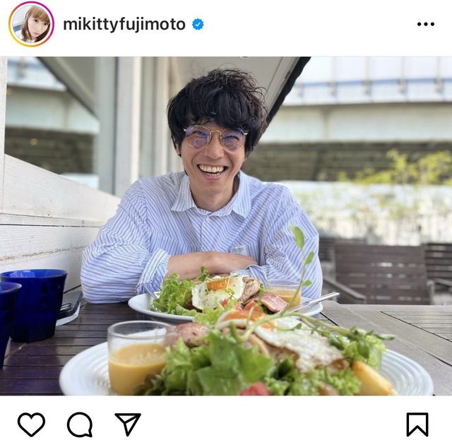 藤本は「私のオトコ♡」とつづり写真を投稿。ランチを前に満面の笑みを浮かべる庄司の姿を公開しました。